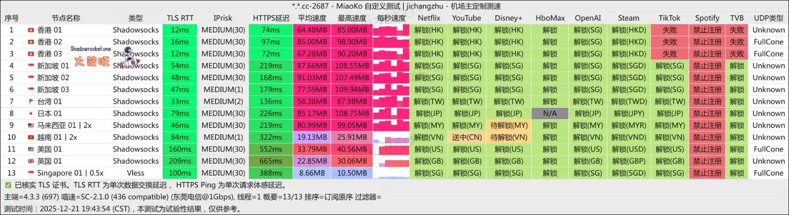 速度测试和流媒体解锁测试